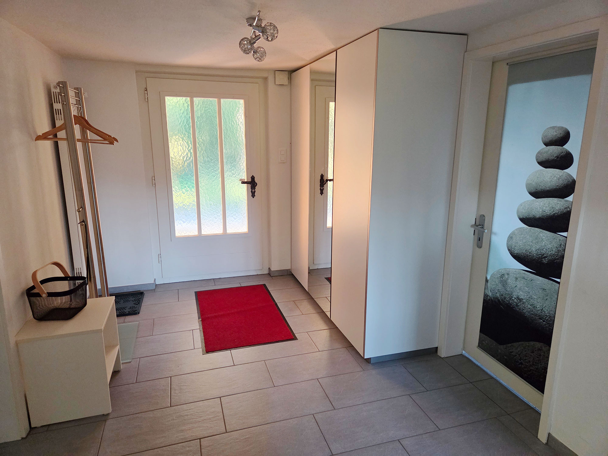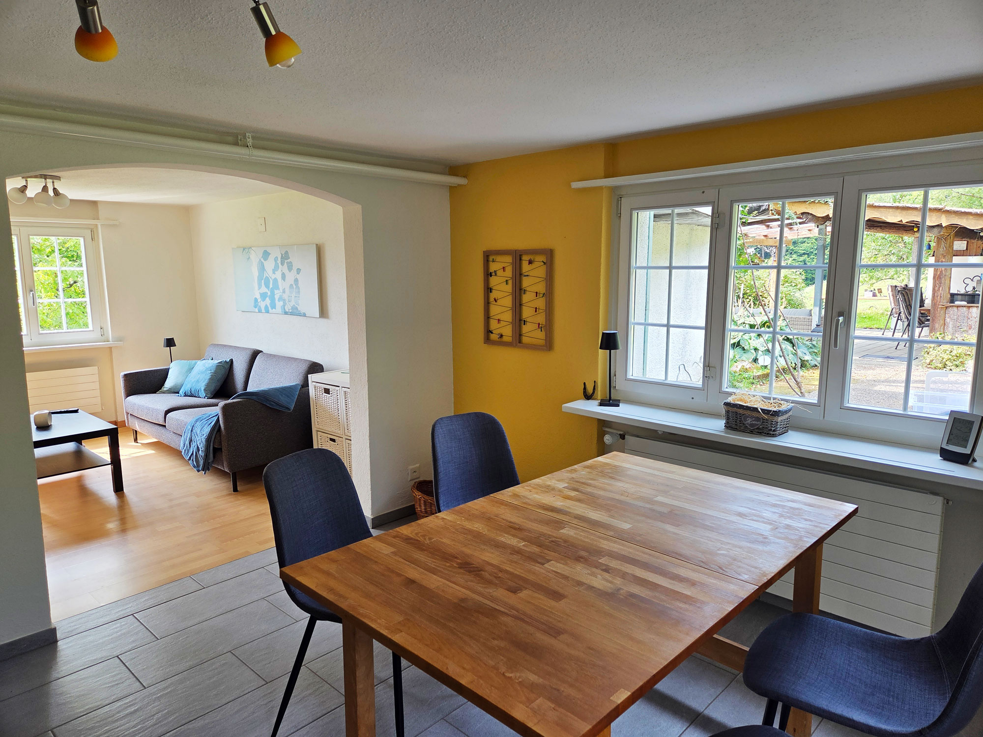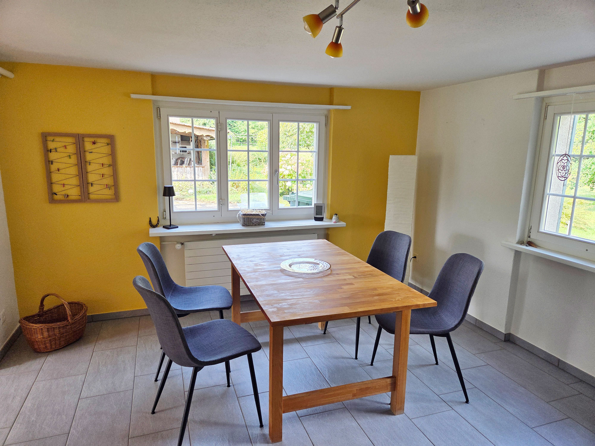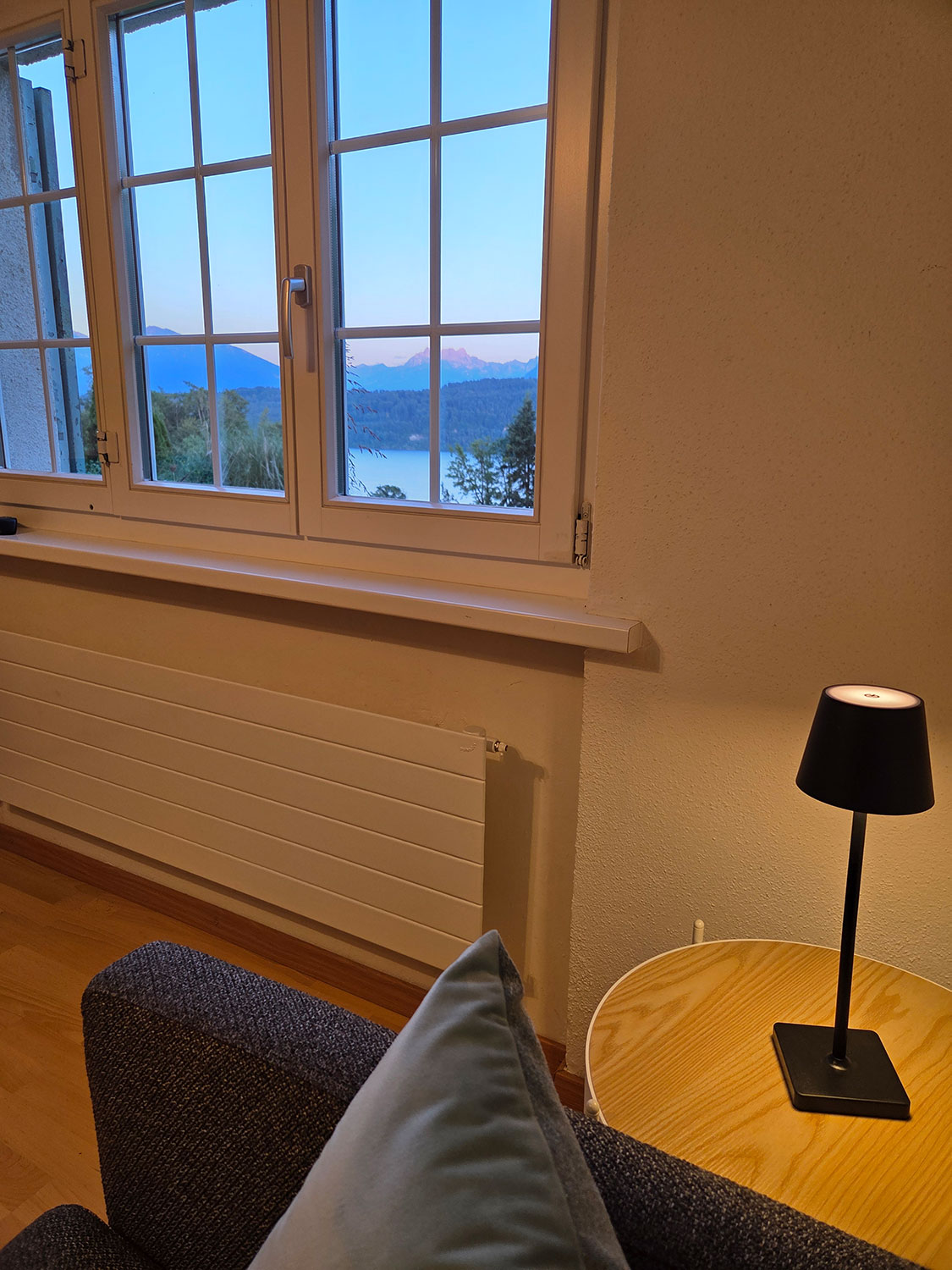 Diese Ferienwohnung bietet eine Oase der Ruhe für Naturliebhaber. Umgeben von Wiesen und Wäldern geniessen Sie erholsame Tage mit traumhafter Aussicht aufs Wasser und Berge – der perfekte Ort zum Abschalten und Auftanken.