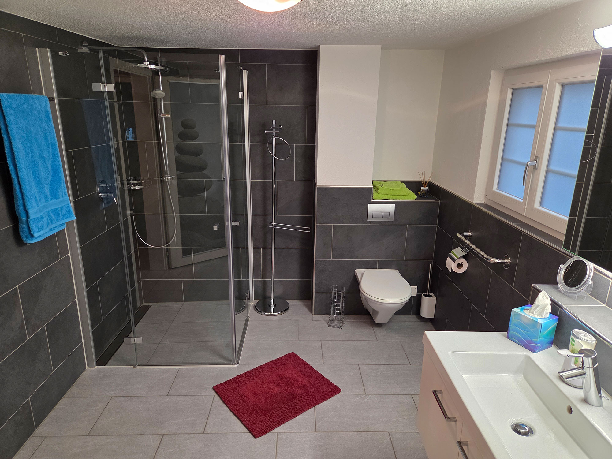 Das Badezimmer ist mit einer Bodenheizung ausgestattet. Bitte schalten Sie diese bei Nichtgebrauch und beim Verlassen der Wohnung aus.